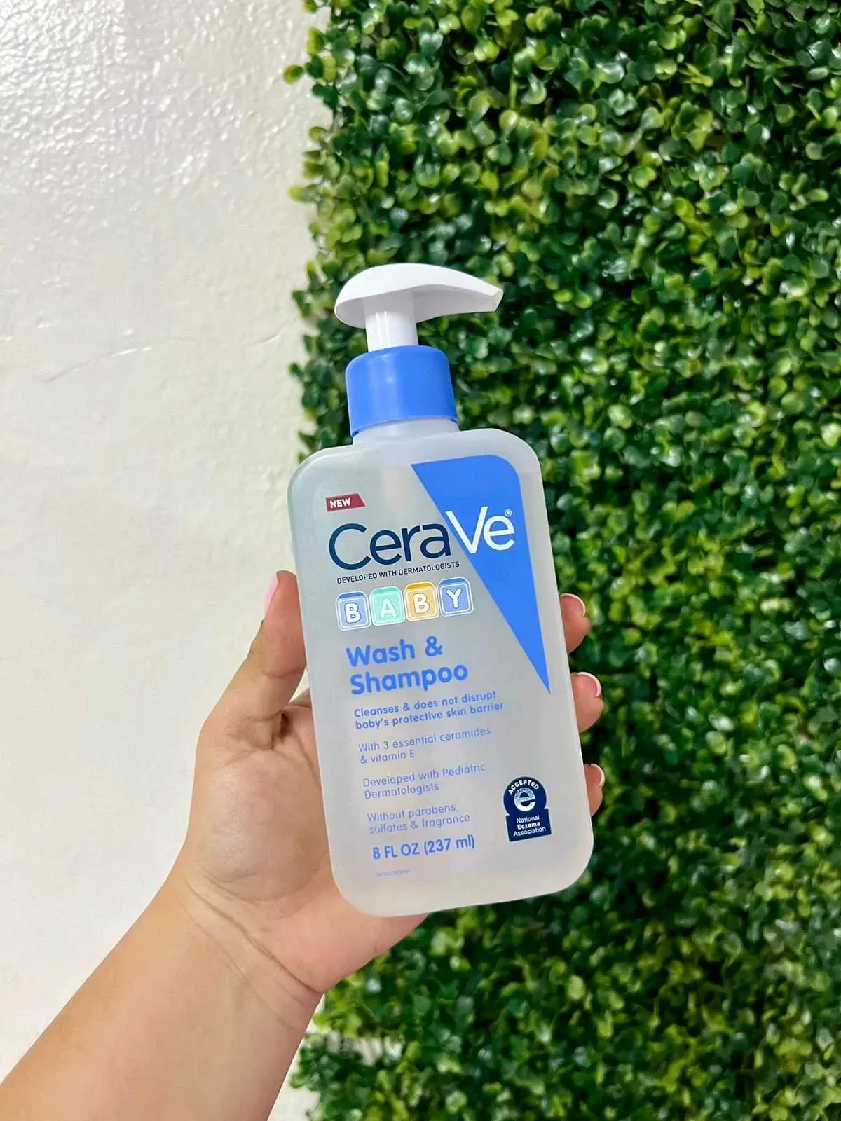 CeraVe Baby Wash & Shampoo es el único producto que necesitas para la hora del baño del bebé. Este limpiador y shampoo para bebés sin perfume, sin parabenos, deja el cabello suave y la piel del bebé fresca y limpia.